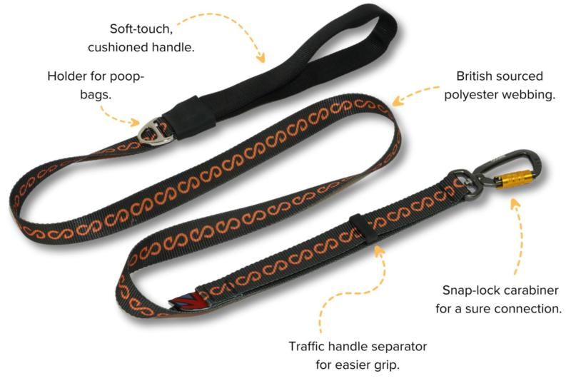 The length of the lead is built with British-sourced polyester webbing, complete with a cushioned handle that is soft on your hands, making the lead comfortable to hold.
